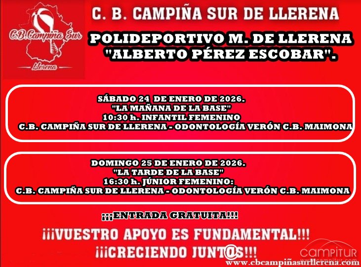 El próximo fin de semana vuelve cargado de baloncesto para el C. B. Campiña Sur de Llerena, desde hoy, viernes 23, hasta el domingo 25 de enero.